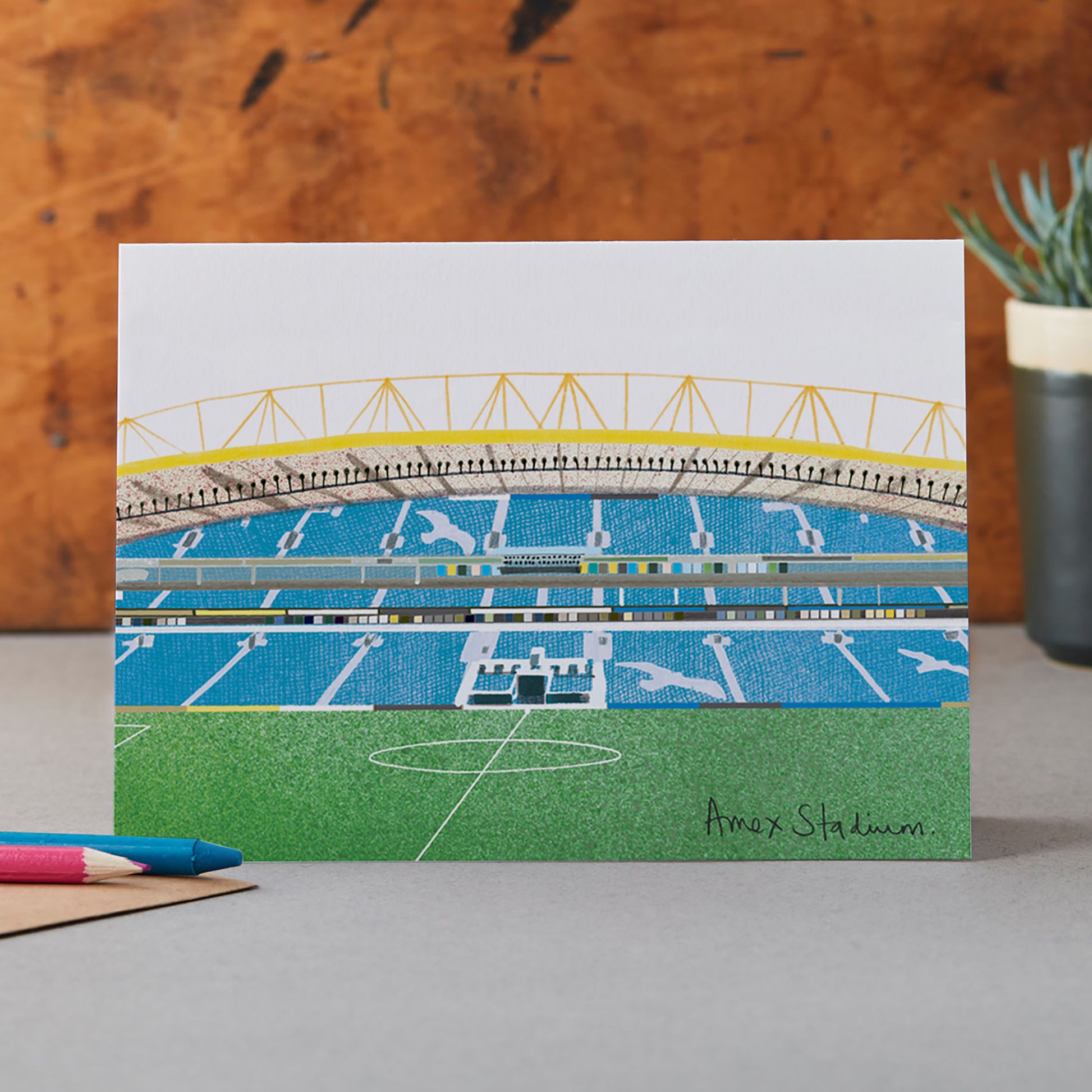 This beautiful I Drew This Amex Stadium card is part of our award winning Landmarks range, featuring cityscapes and landmarks from Brighton, London and across England, Scotland, Wales and now America.