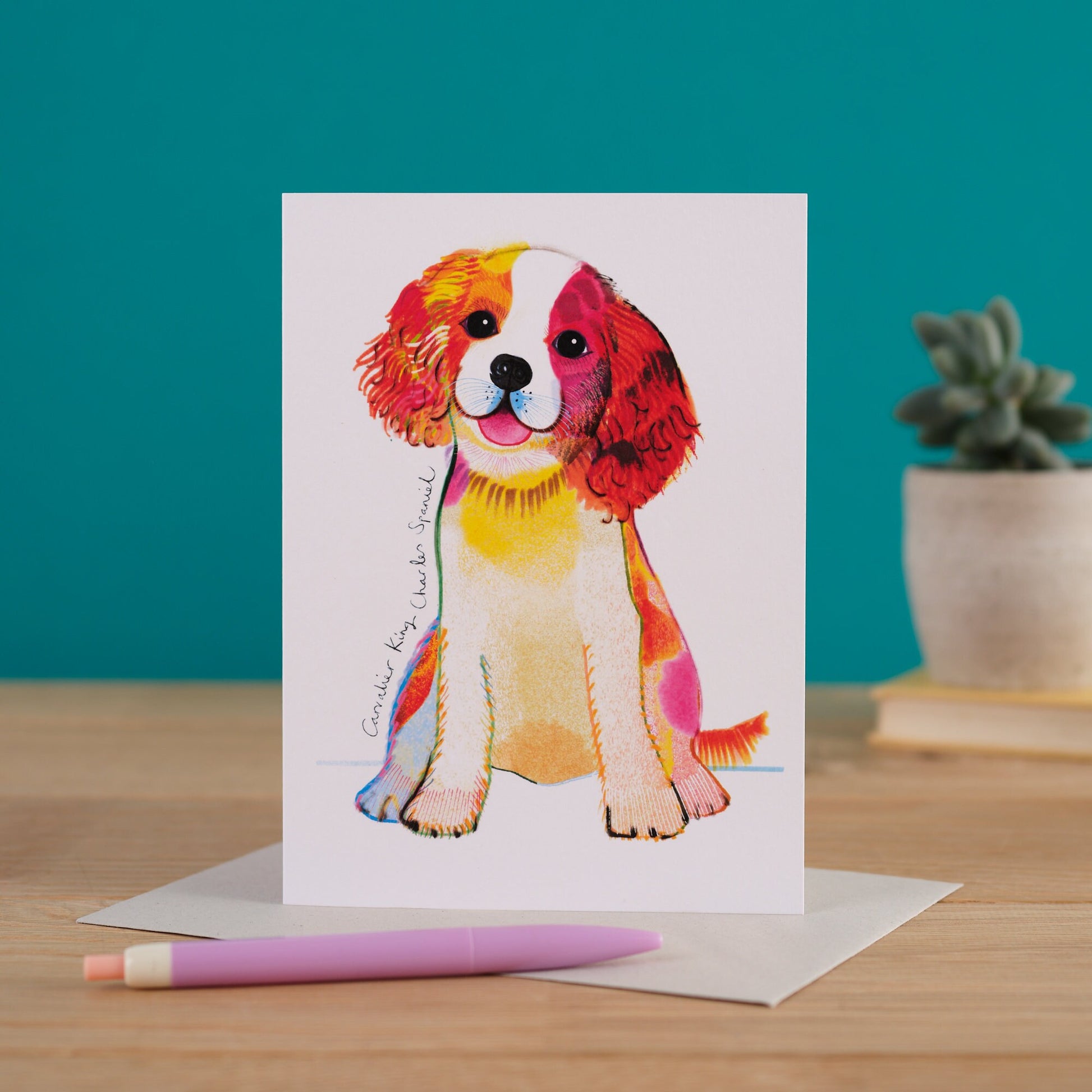 Grab this Loveable Cavalier King Charles Spaniel Greetings Card in Ilona's Signature style. The cutest illustration to send out to loved ones (dogs included)
