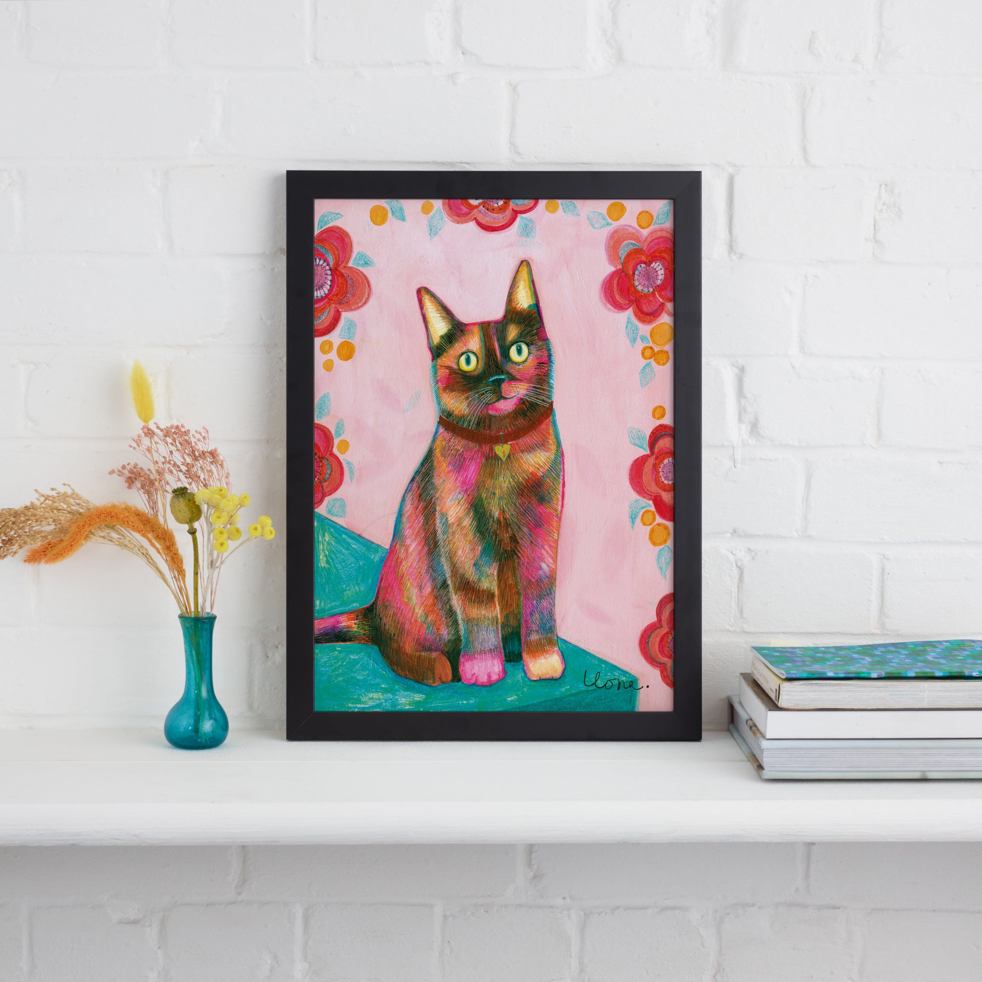 All of my digital prints are printed and framed in the UK. The frames are available in white, black and pink options. Please note the frames are unmounted.