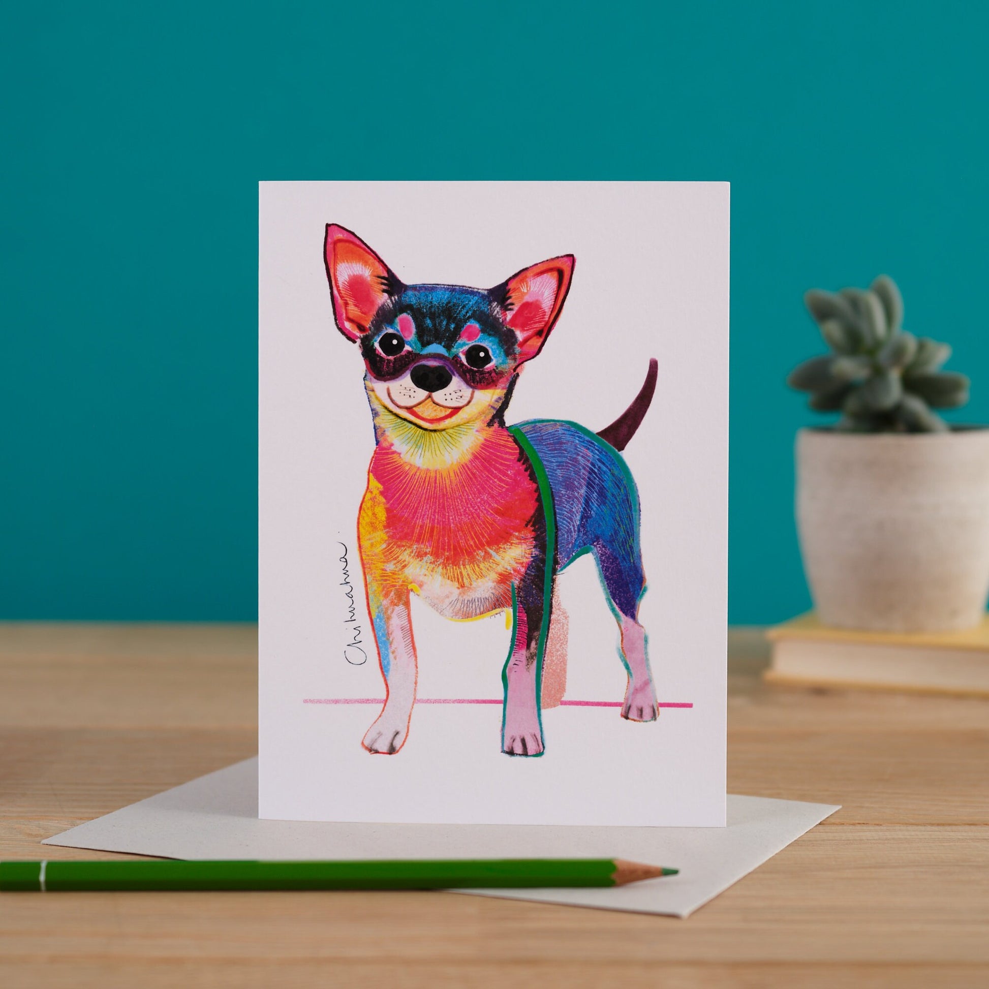 Grab this Loveable Chihuahua Greetings Card in Ilona's Signature style. The cutest illustration to send out to loved ones (dogs included)