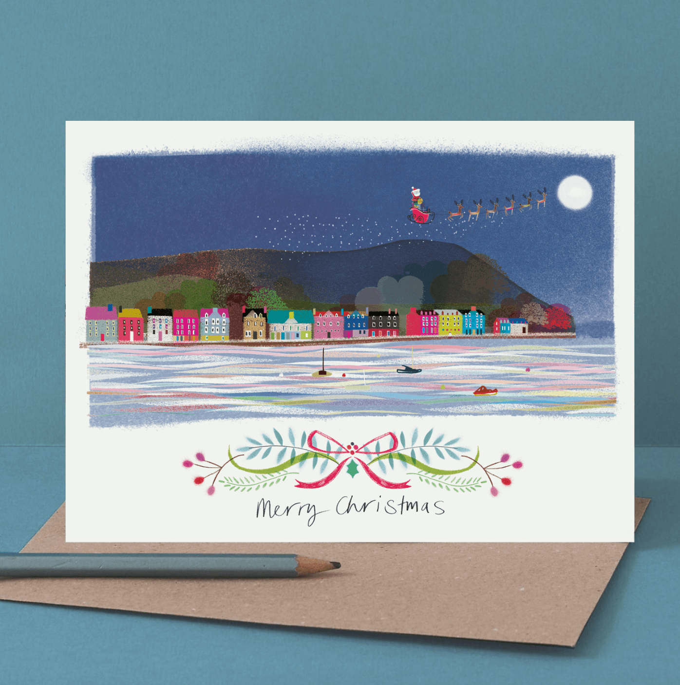 Uniquely designed by Ilona Drew this stunning Christmas card featuring Tobermory in Scotland has been printed in the UK on quality 350gsm board and measuring 178mm x 130mm.