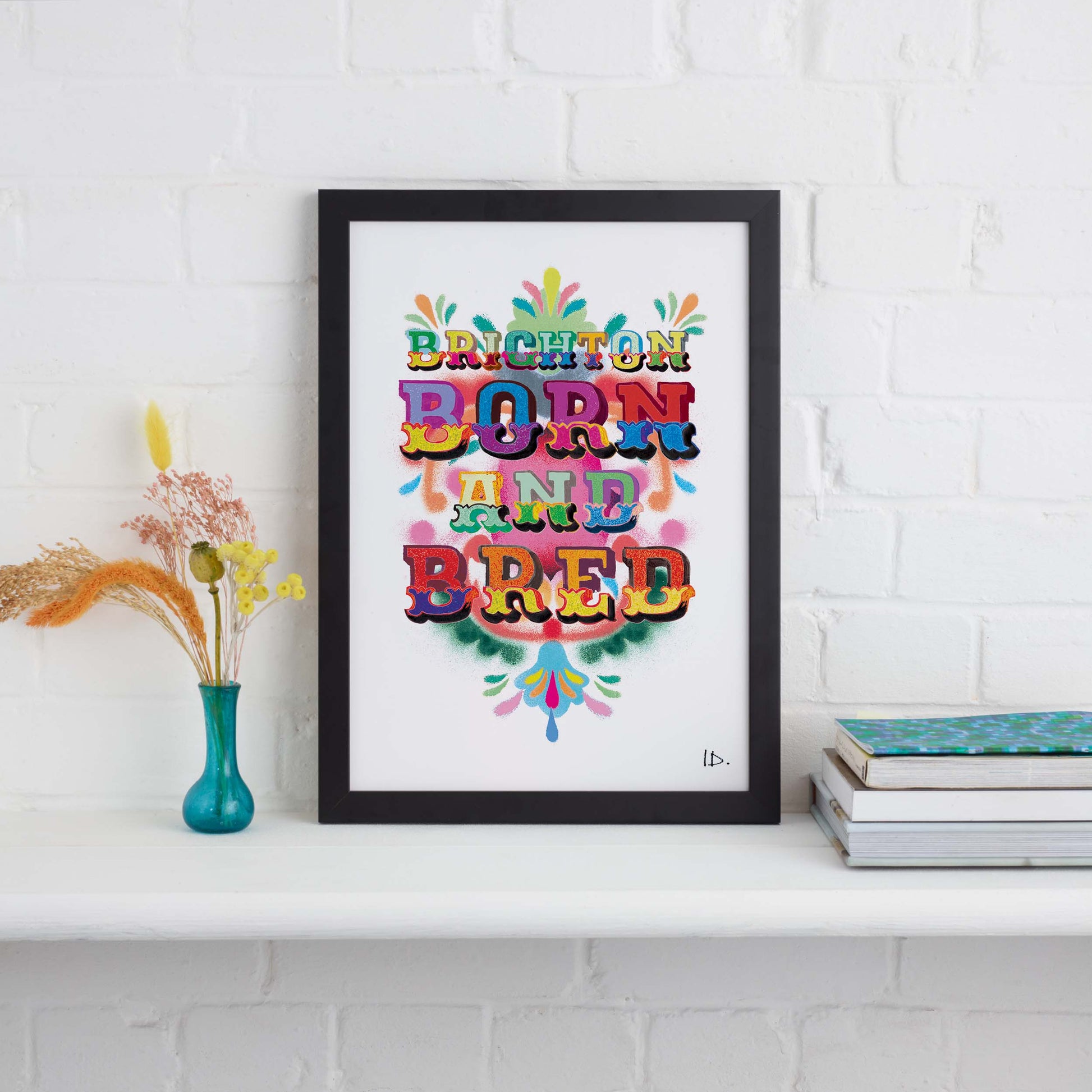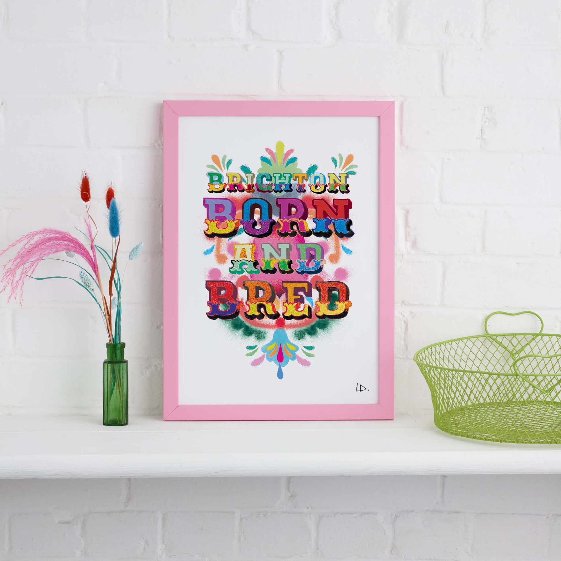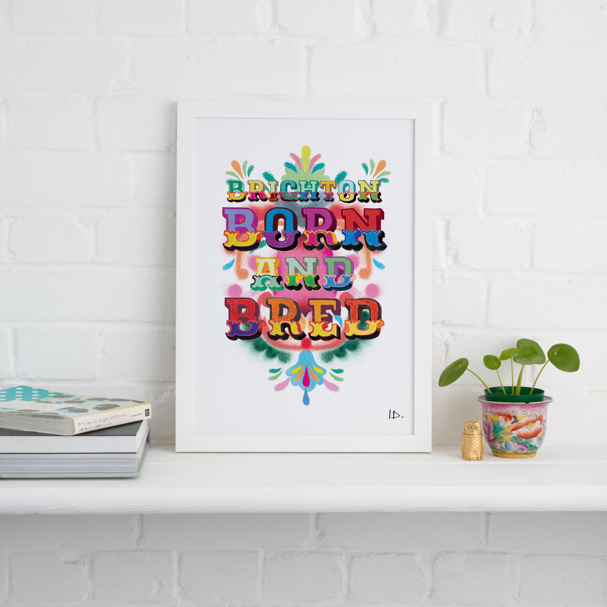 Grab this fun and vibrant typography print, Brighton Born and Bred.
