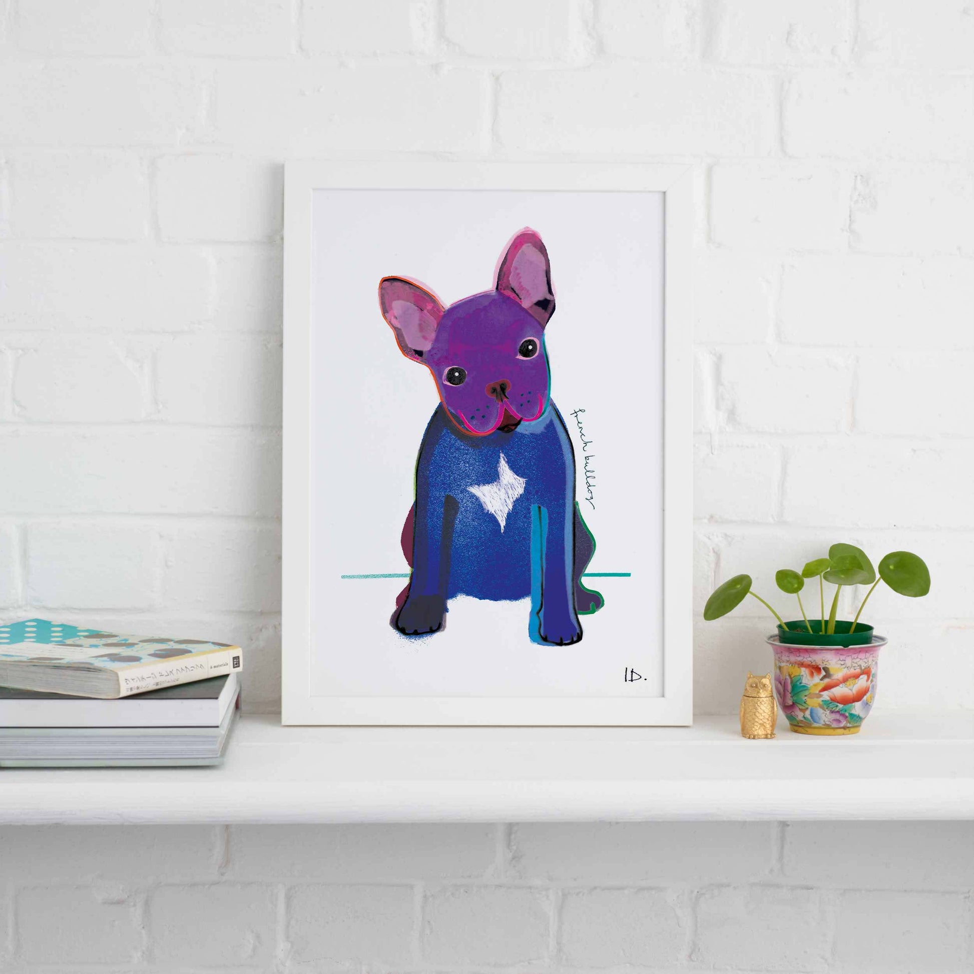 This Adorable French Bulldog has been captured in Ilona's Signature style with beautiful bright colours. It’s the cutest illustration to gift to dog parents and dog lovers.