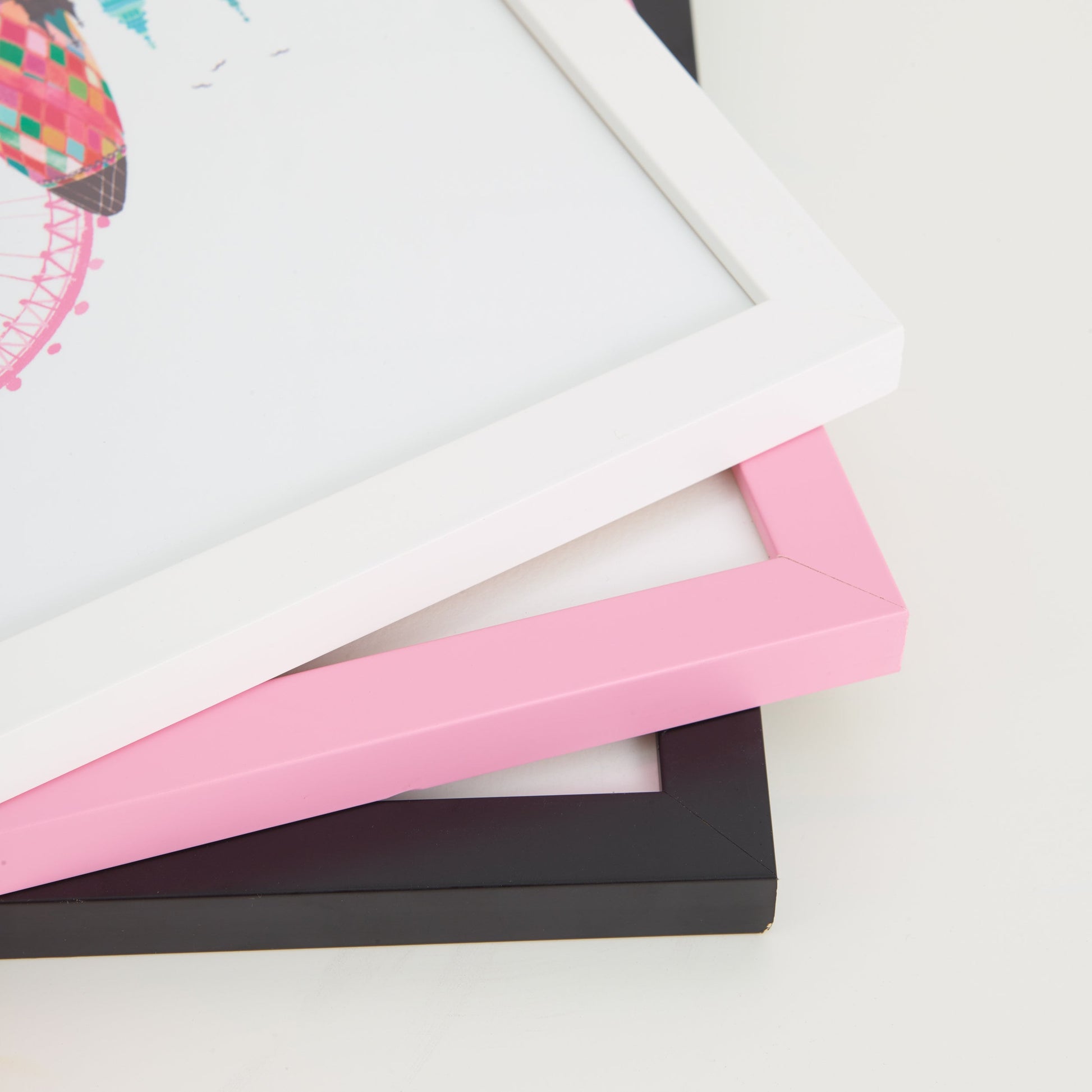 All of my digital prints are printed and framed in the UK. The frames are available in white, black and pink options. Please note the frames are unmounted.