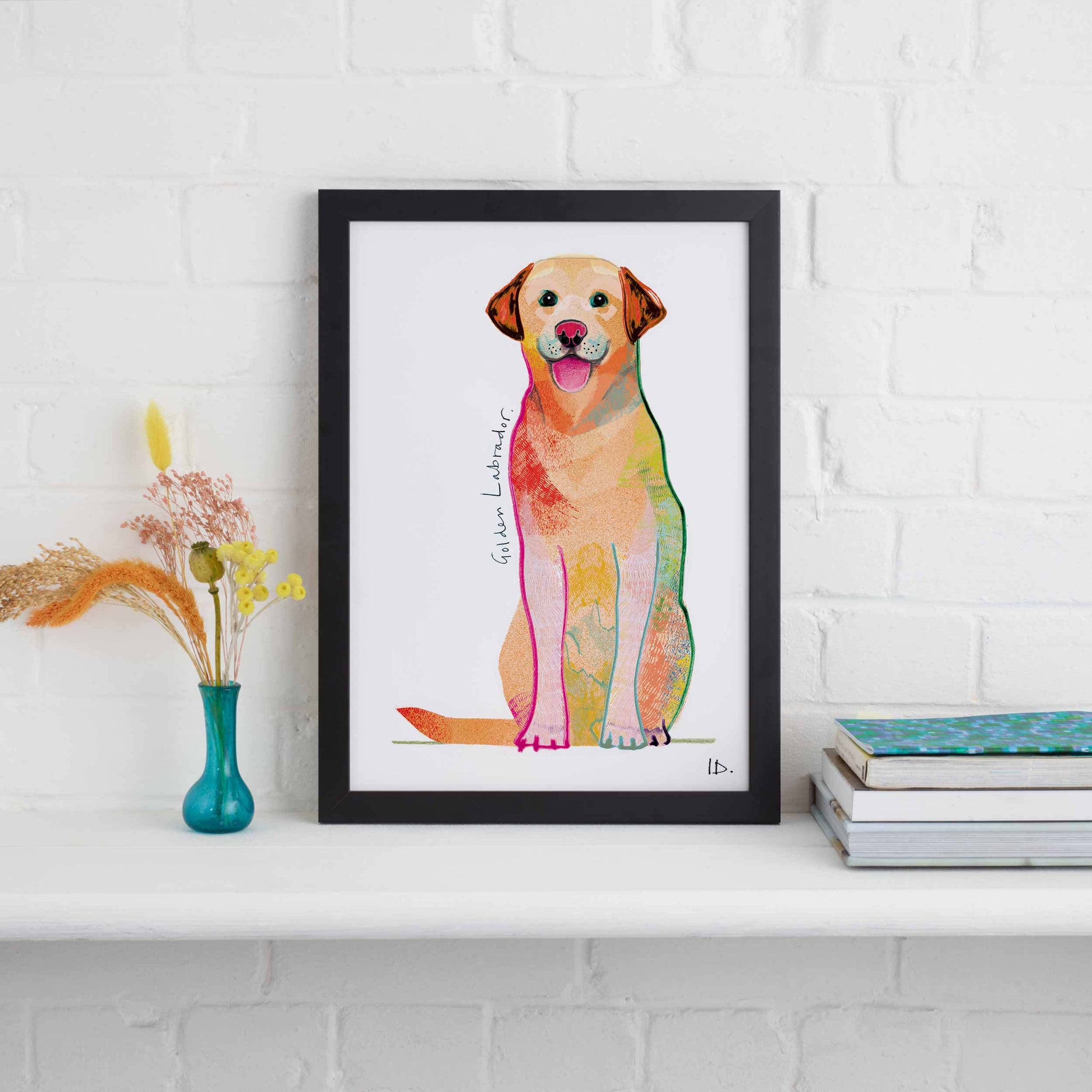 This Adorable Golden Labrador has been captured in Ilona's Signature style with beautiful bright colours. It’s the cutest illustration to gift to dog parents and dog lovers.