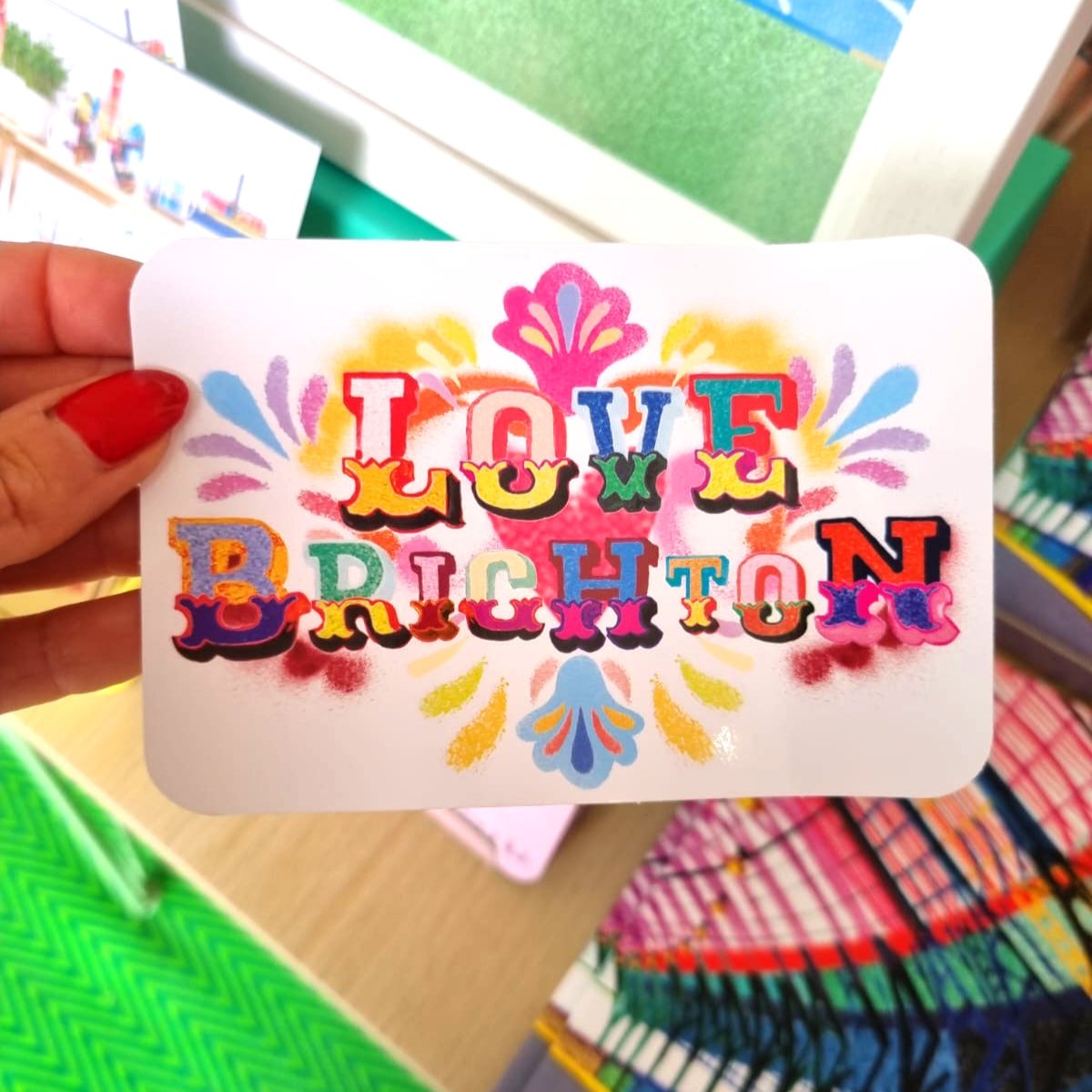 Grab this fun and vibrant typography Love Brighton Sticker. A fun way to decorate and personalise laptops, windows, and more.