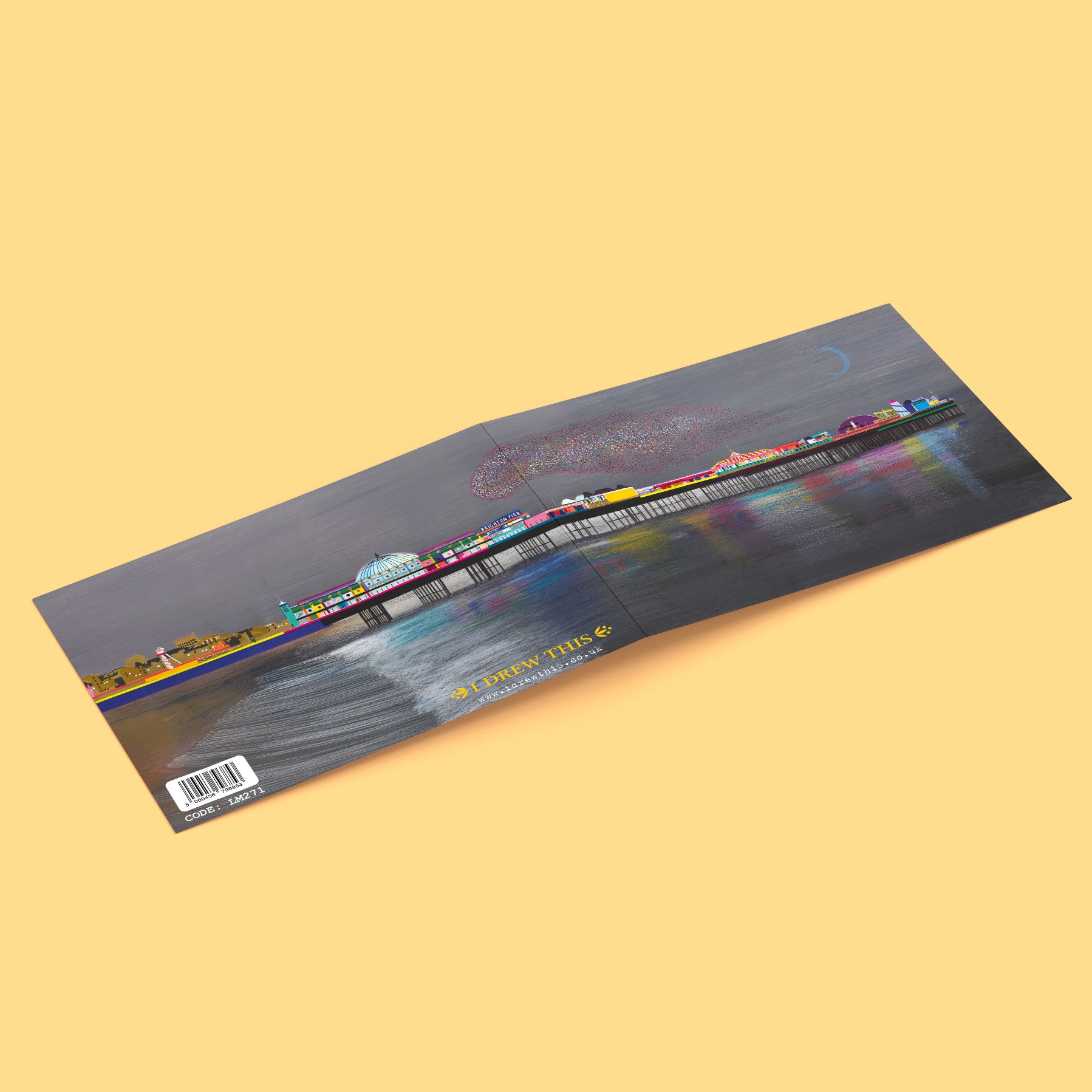 The view of The Palace Pier in Brighton on a grey day has been captured in beautiful colours in Ilona's illustration. Capturing The Iconic Pier. This card showcases the view over the front and the back page to really make a wow card.