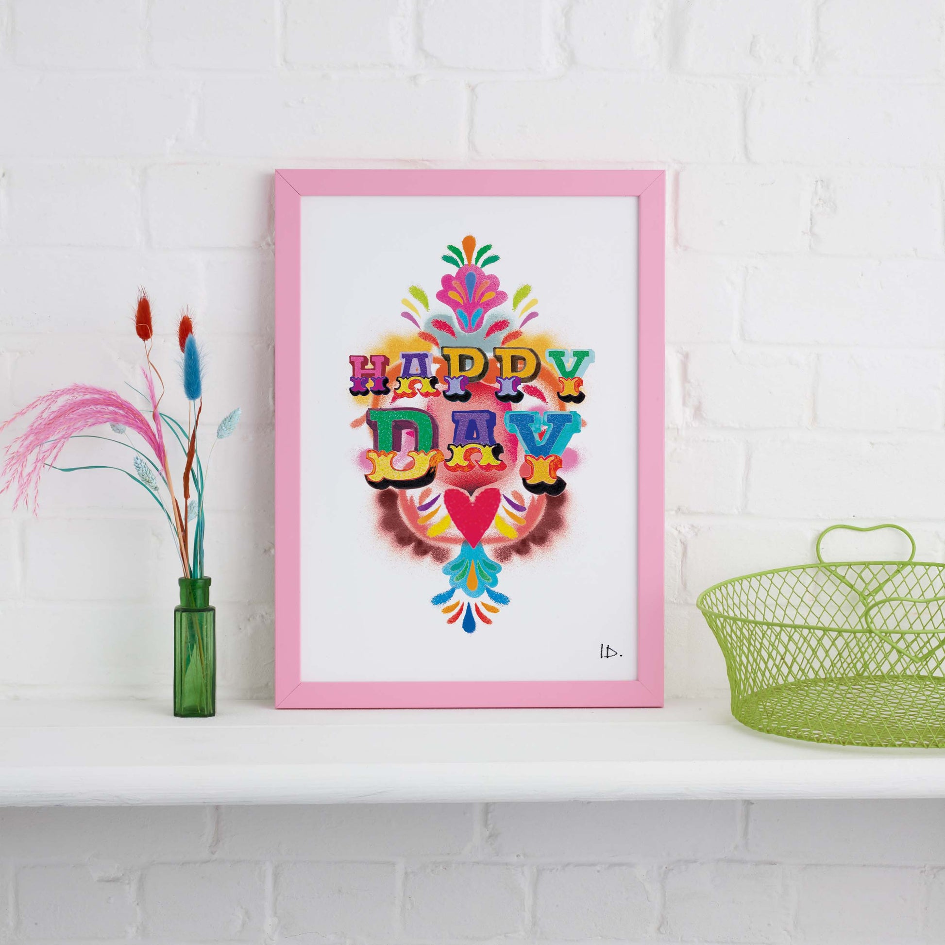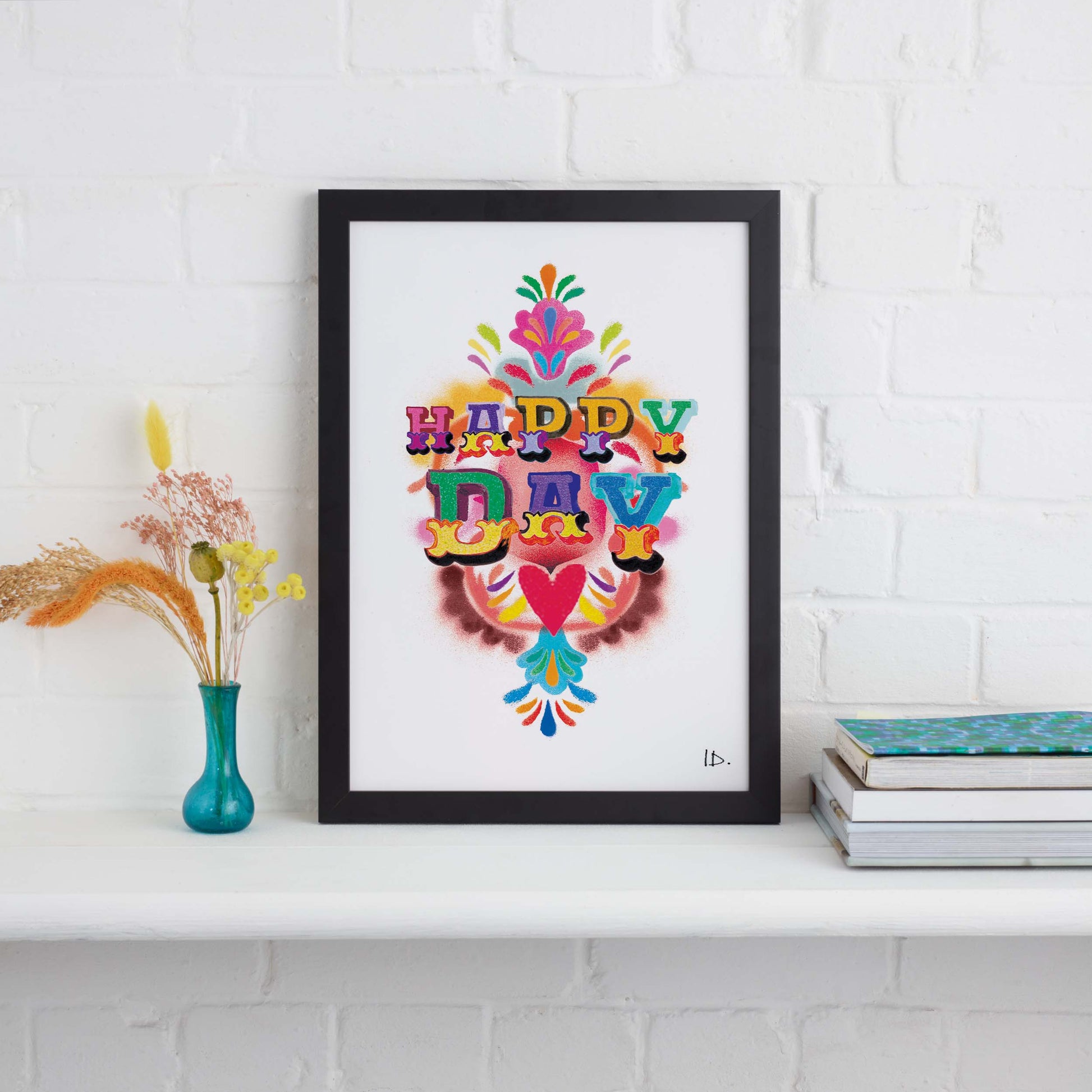 Grab this fun and vibrant typography print, Happy Day.