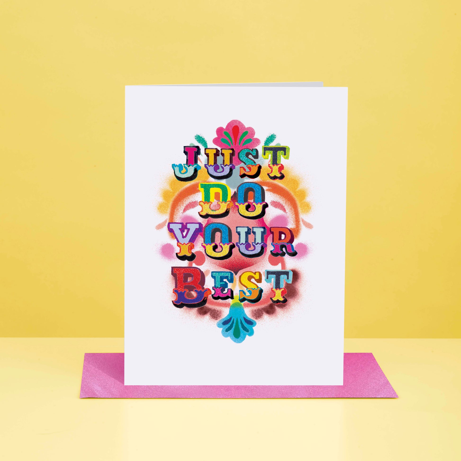 Grab this fun and vibrant typography Just Do Your Best Greetings card.