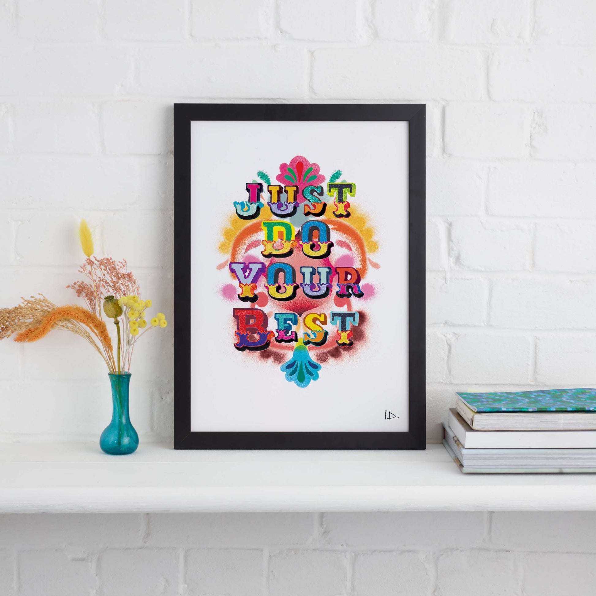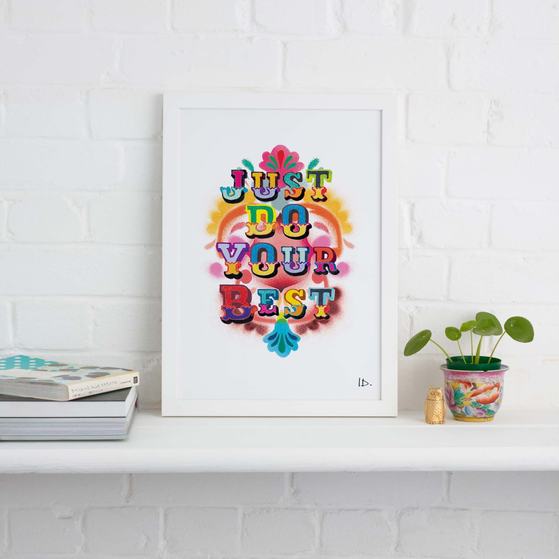 Grab this fun and vibrant typography print, Just Do Your Best.