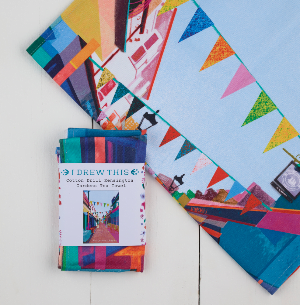 This tea towel captures colourful Brighton beautifully in Ilona's illustration of Kensington Gardens in the Lanes.