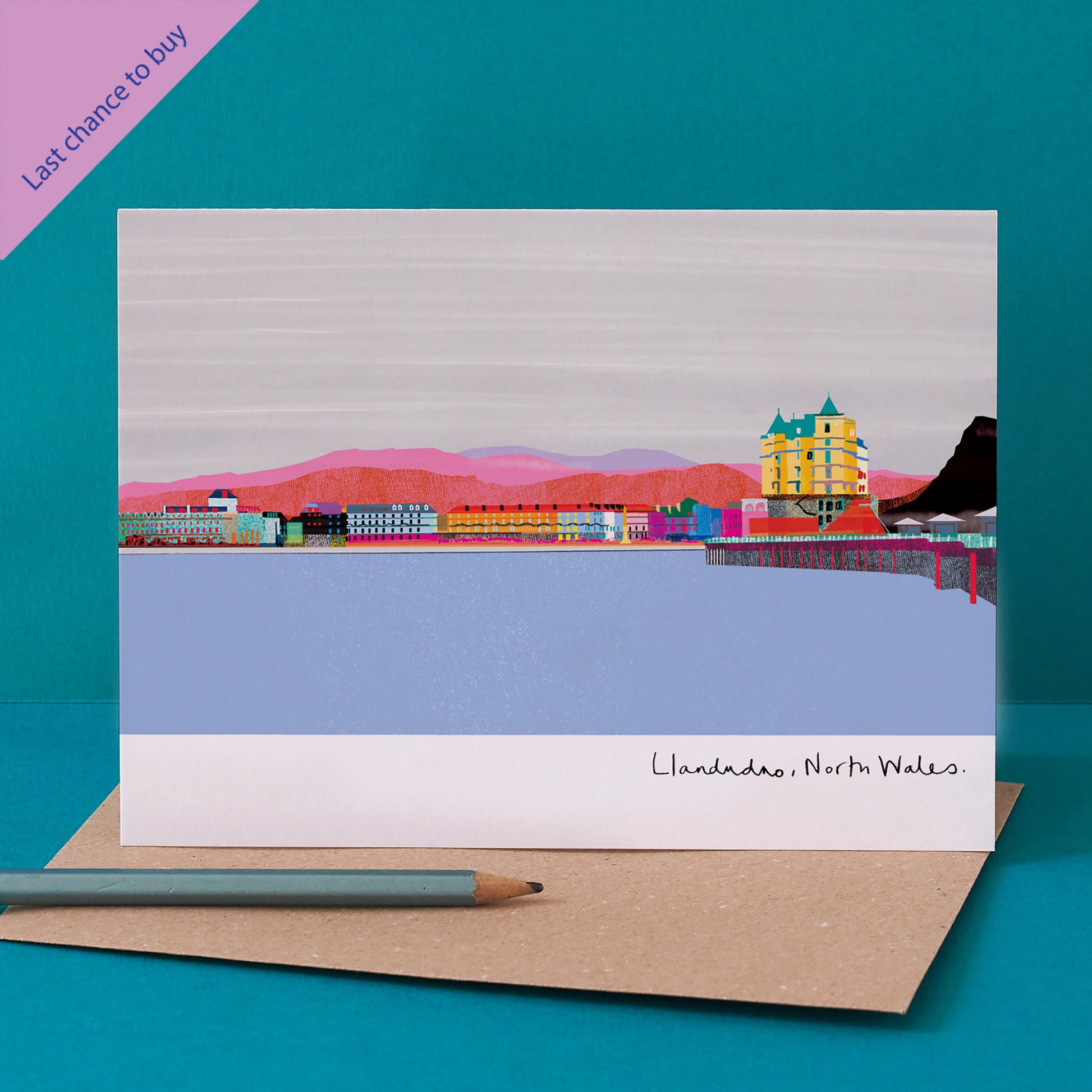 Uniquely designed by Ilona Drew this stunning card featuring Llandudno, North Wales has been printed in the UK on quality 350gsm board and measuring 178mm x 130mm.