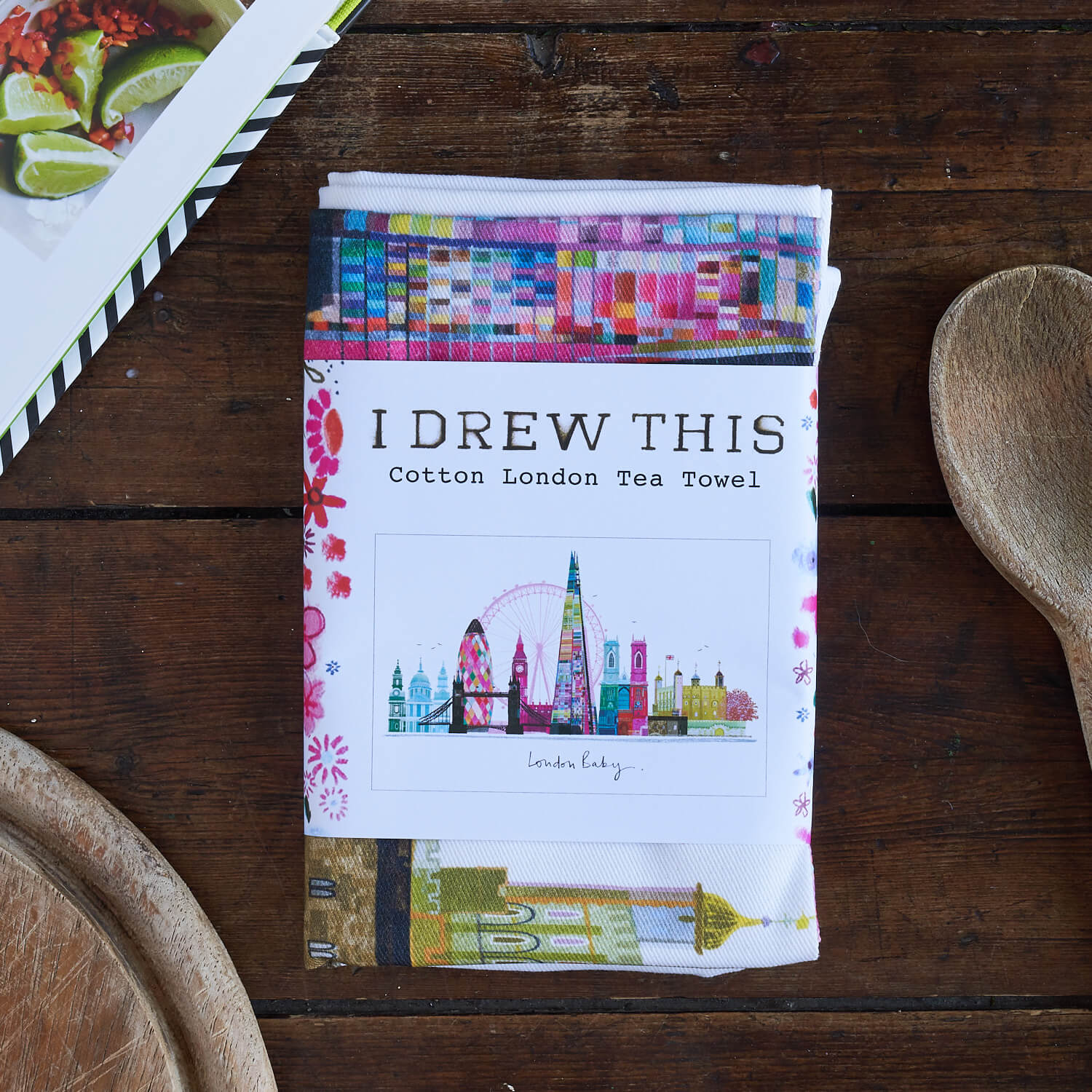 This colourful I Drew This tea towel is part of our award winning Landmarks range, featuring cityscapes and landmarks from Brighton, Sussex, London and across England, Scotland, Wales and Ireland.