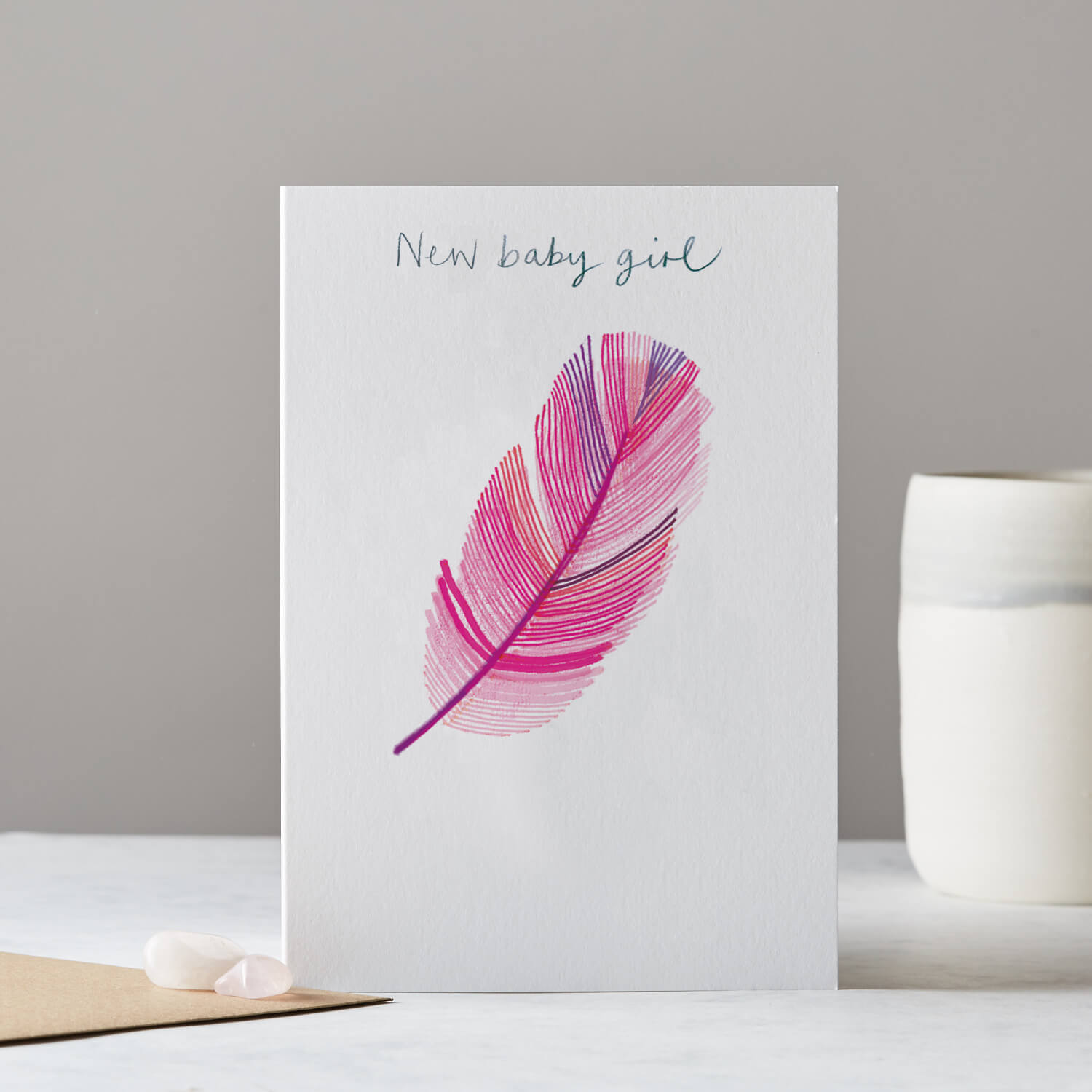 NEW BABY GIRL FEATHER CARD