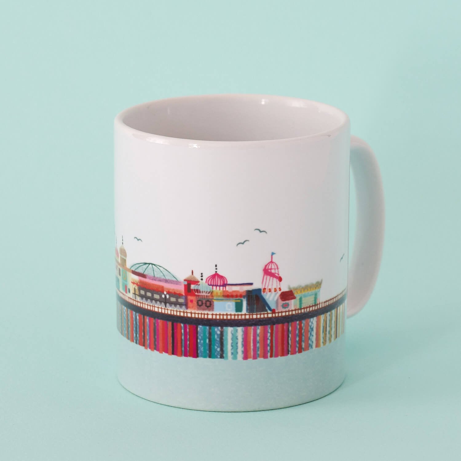 This Palace Pier Brighton Landmarks mug is bursting with colour designed by Ilona Drew.