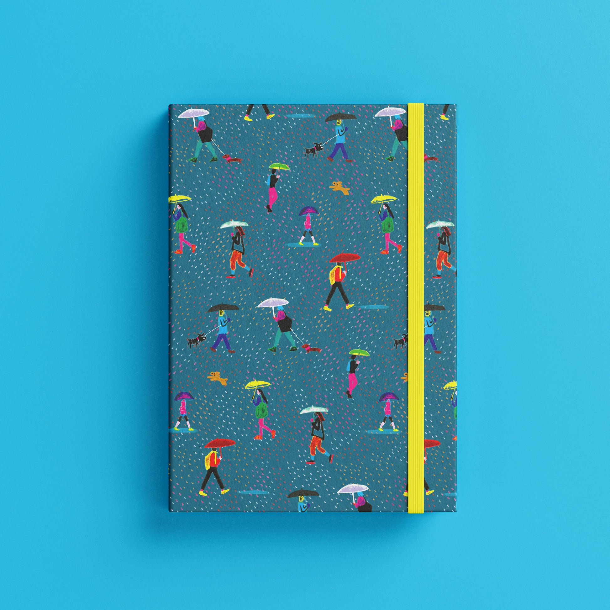 Grab this Fun and colourful Rain, Rain Go Away A5 Notebook in Ilona's signature style.