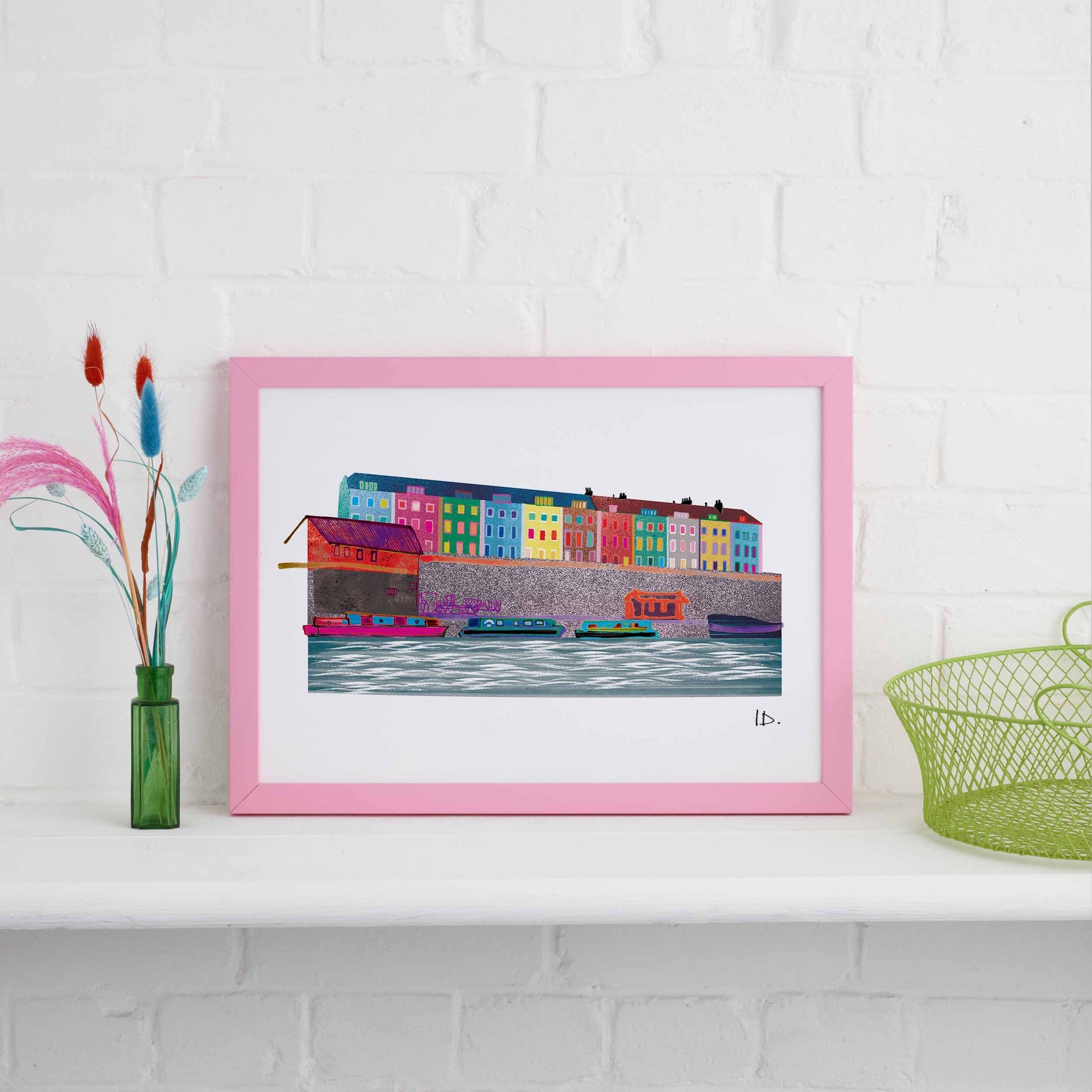 Redcliffe Parade in Bristol has been captured in beautiful bright colours in Ilona's illustration of the iconic waterfront in Bristol, England.