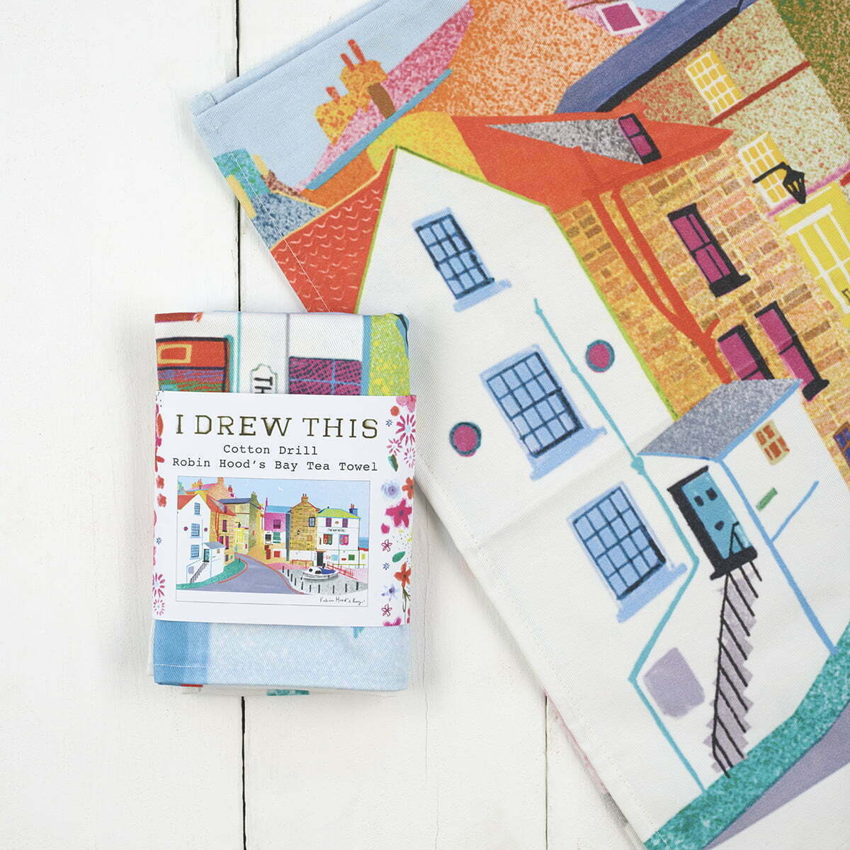 This tea towel captures one of Yorkshire's most famous villages beautifully in Ilona's illustration of Robin Hoods Bay.