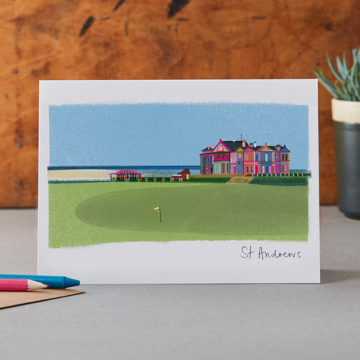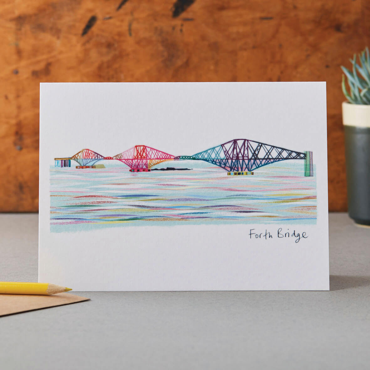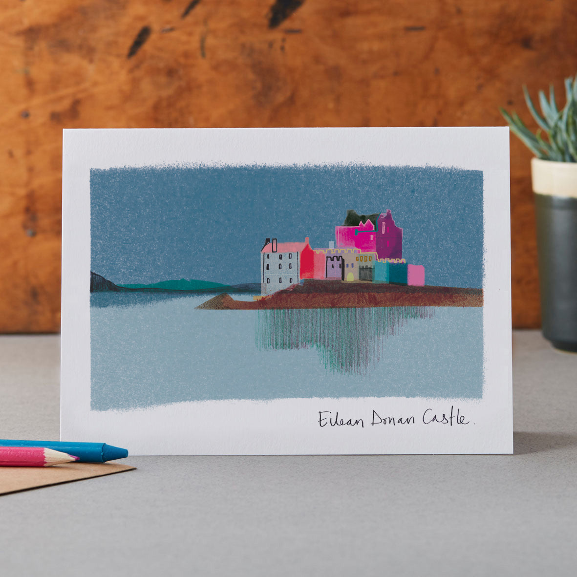 Scottish Greeting Card Pack consisting of 6 designs from famous landmarks in Scotland. Forth Bridge - Eilean Donan - The Duke - St Andrews - The Kelpies - Urquhart Castle. All designed in Ilona's signature style and colour.