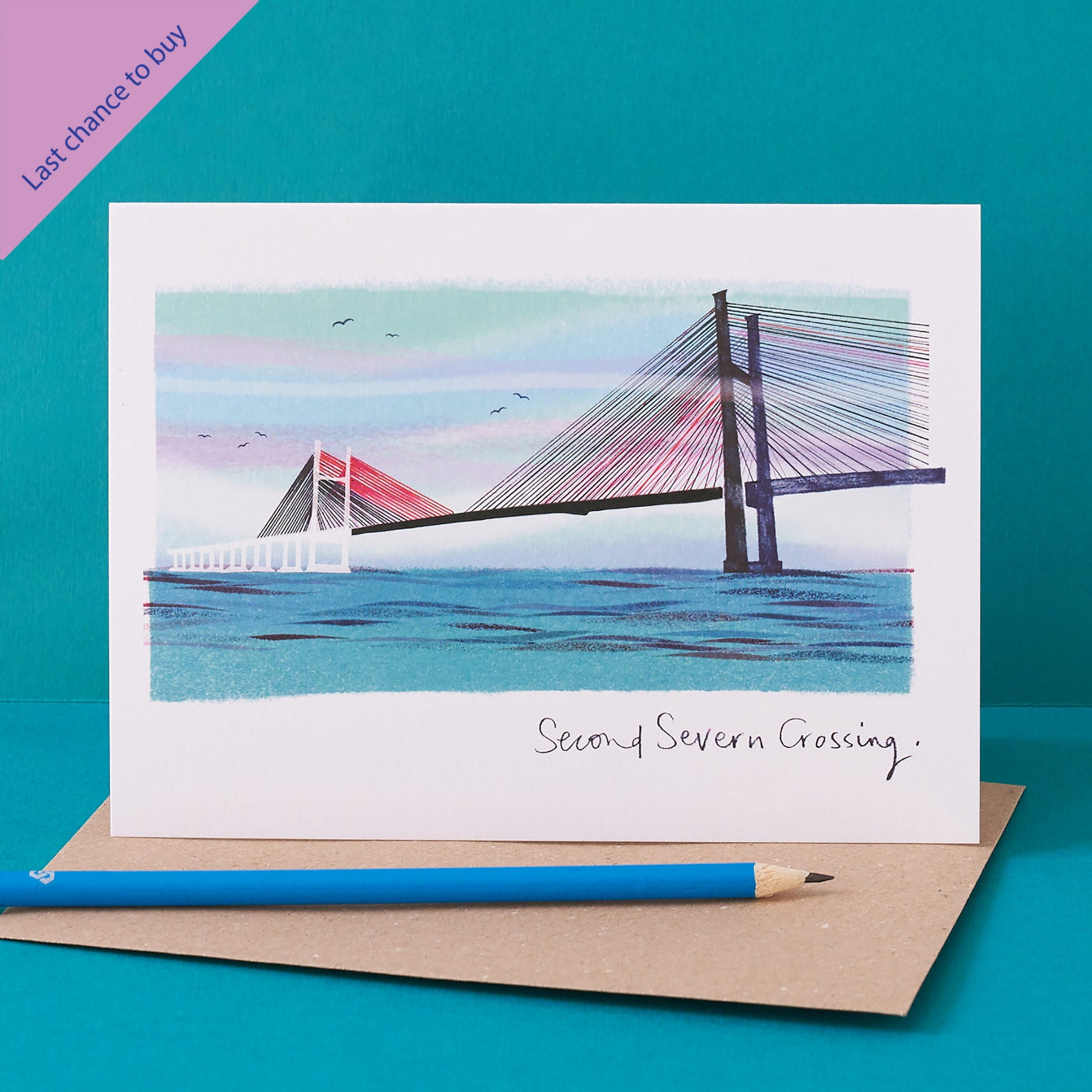 Uniquely designed by Ilona Drew this stunning card featuring the Second Severn Bridge has been printed in the UK on quality 350gsm board.