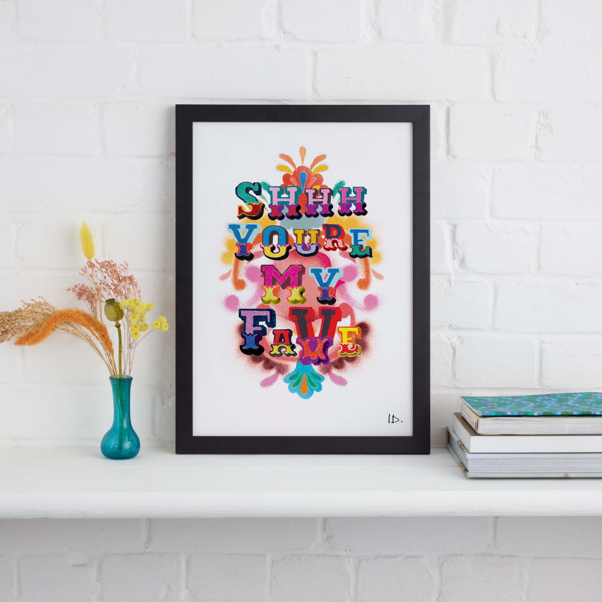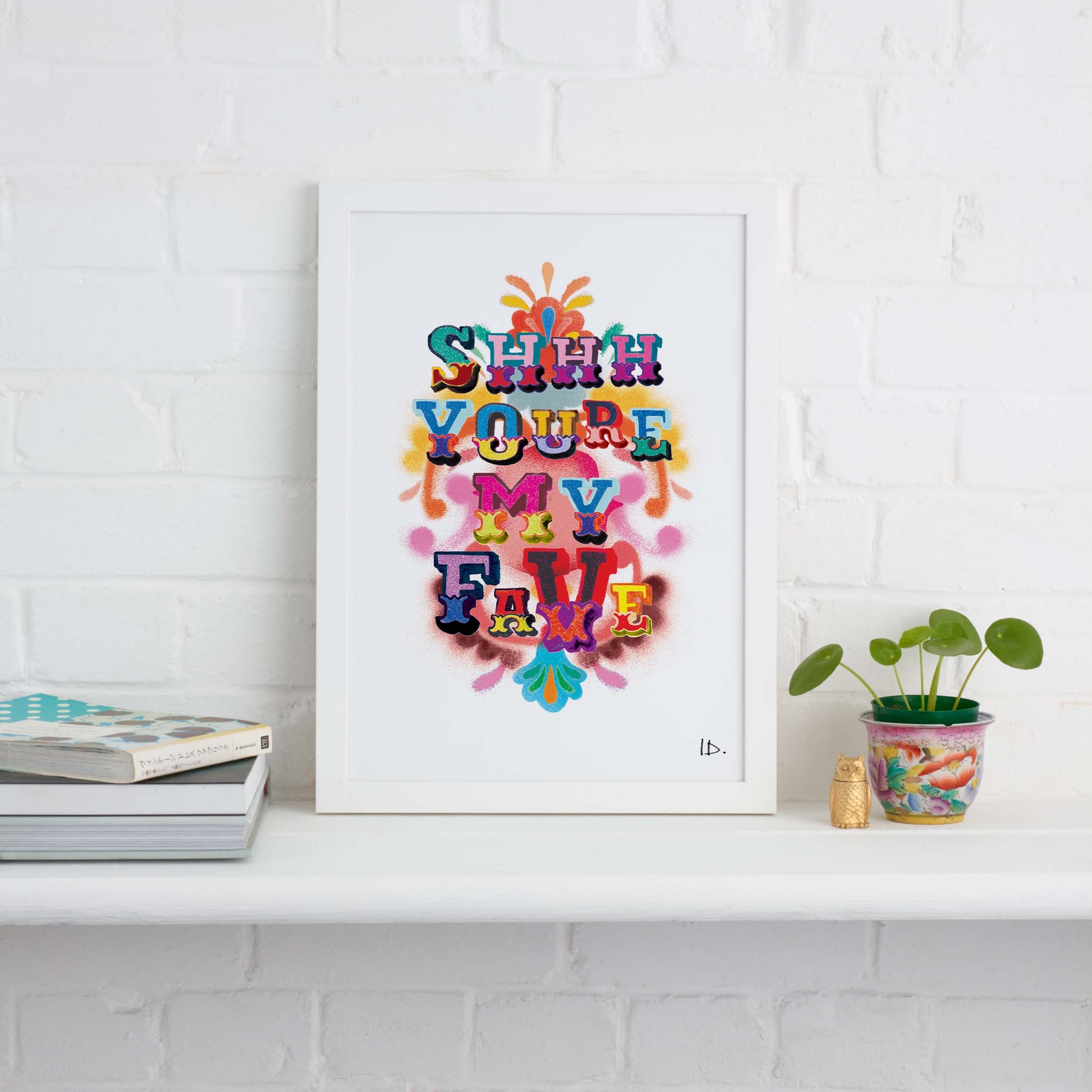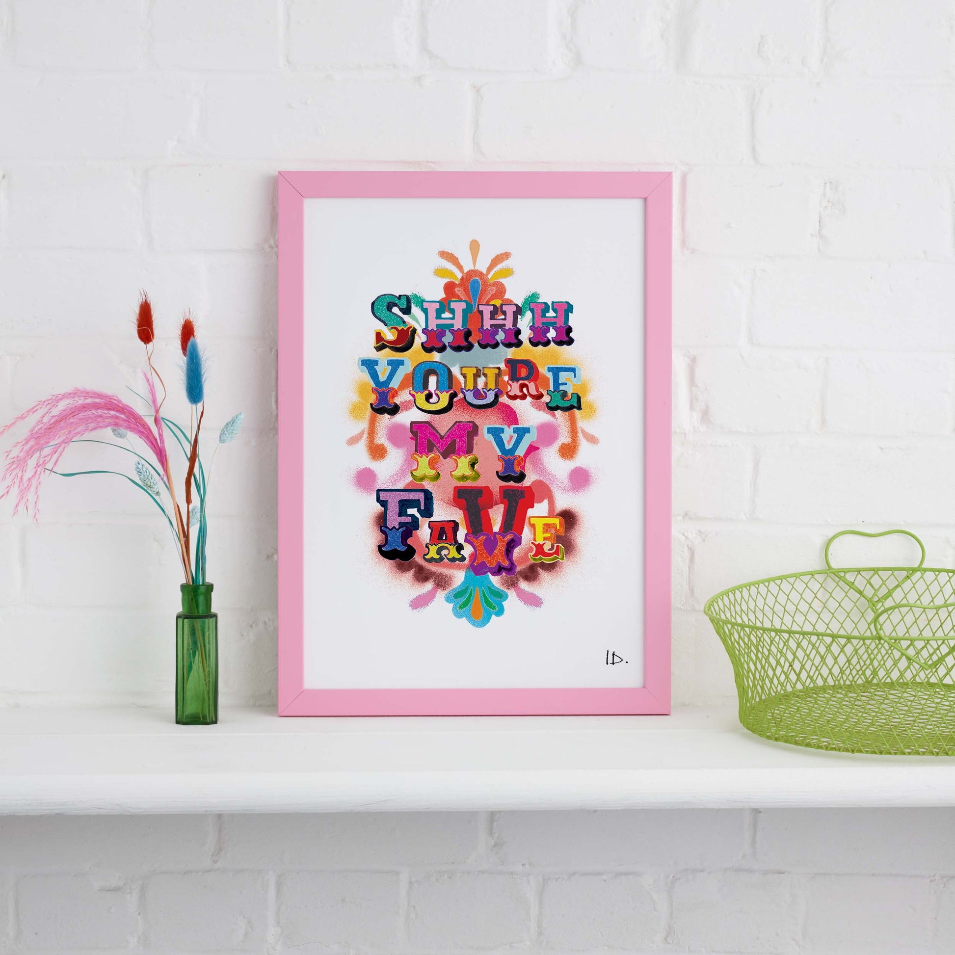 Grab this fun and vibrant typography print, Shhh You're My Fave.