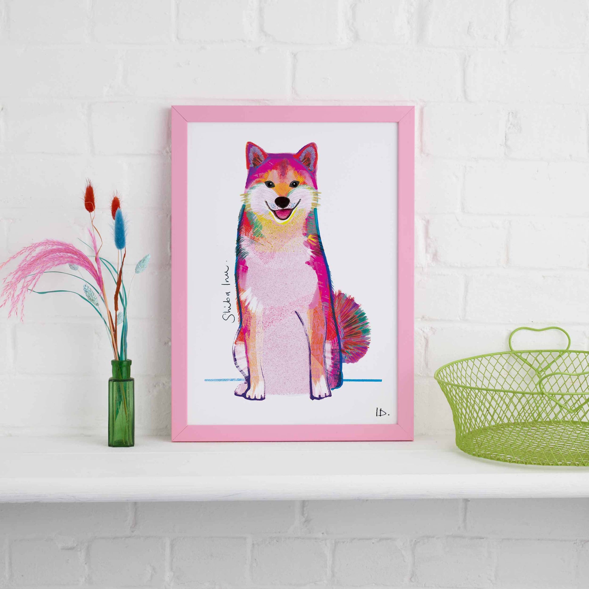 This Adorable Shiba Inu has been captured in Ilona's Signature style with beautiful bright colours. It’s the cutest illustration to gift to dog parents and dog lovers.