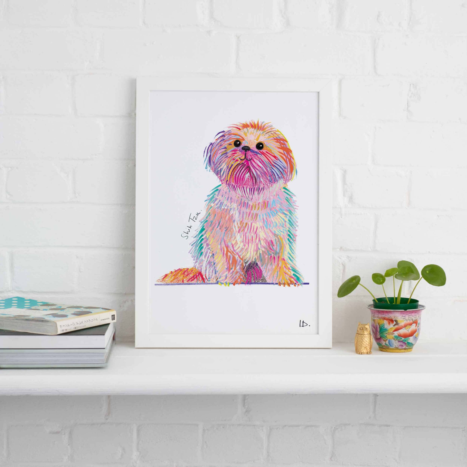 This Adorable Shih Tzu has been captured in Ilona's Signature style with beautiful bright colours. It’s the cutest illustration to gift to dog parents and dog lovers.