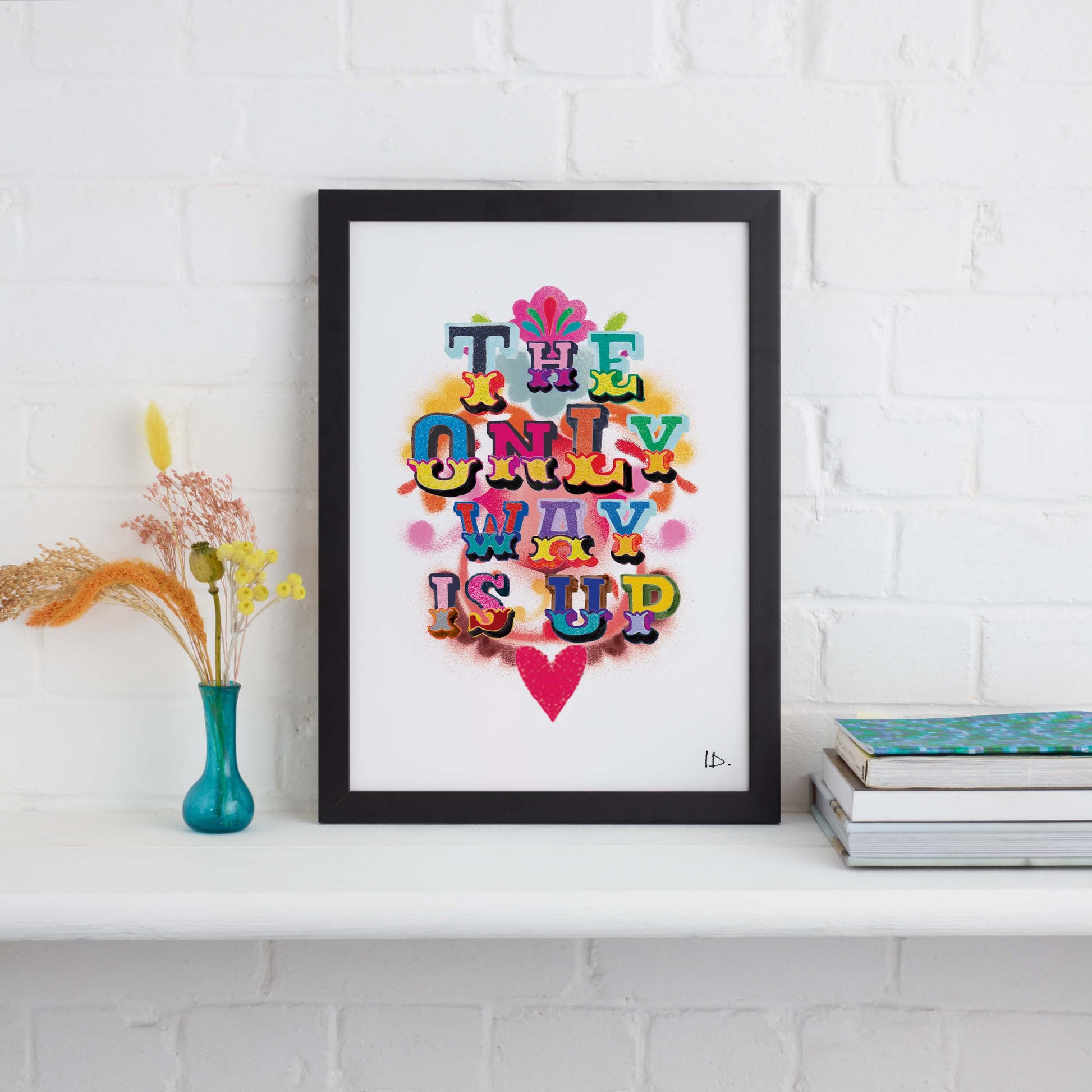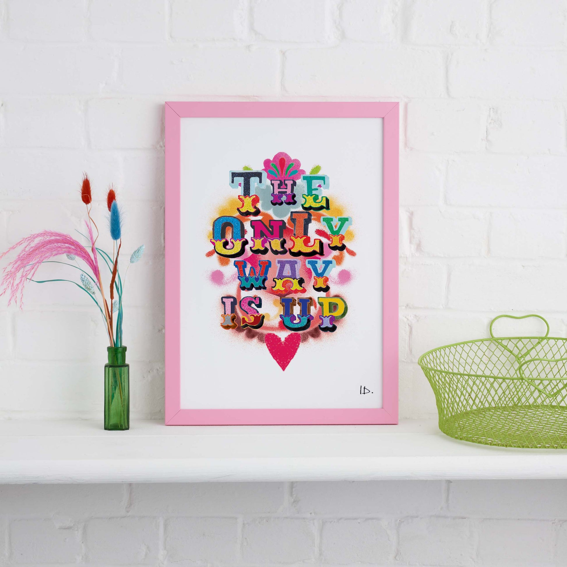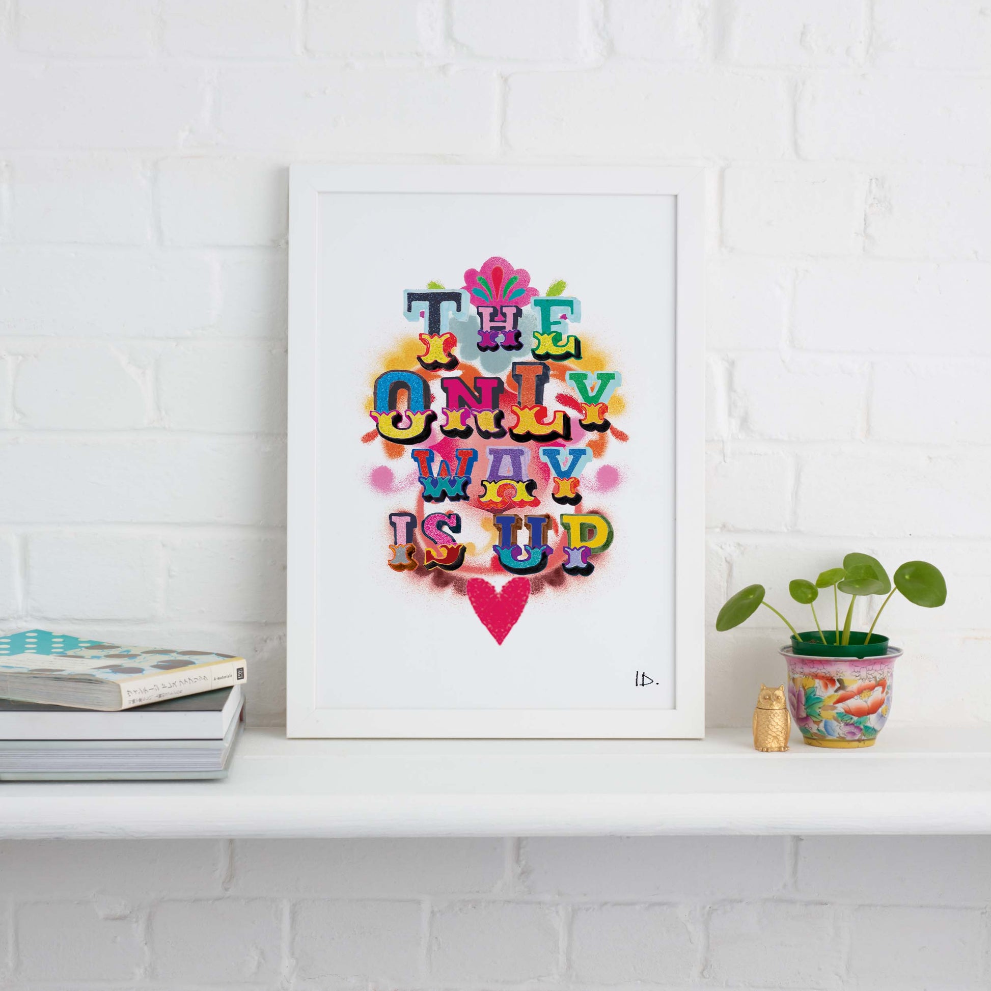 Grab this fun and vibrant typography print, The Only Way Is Up.