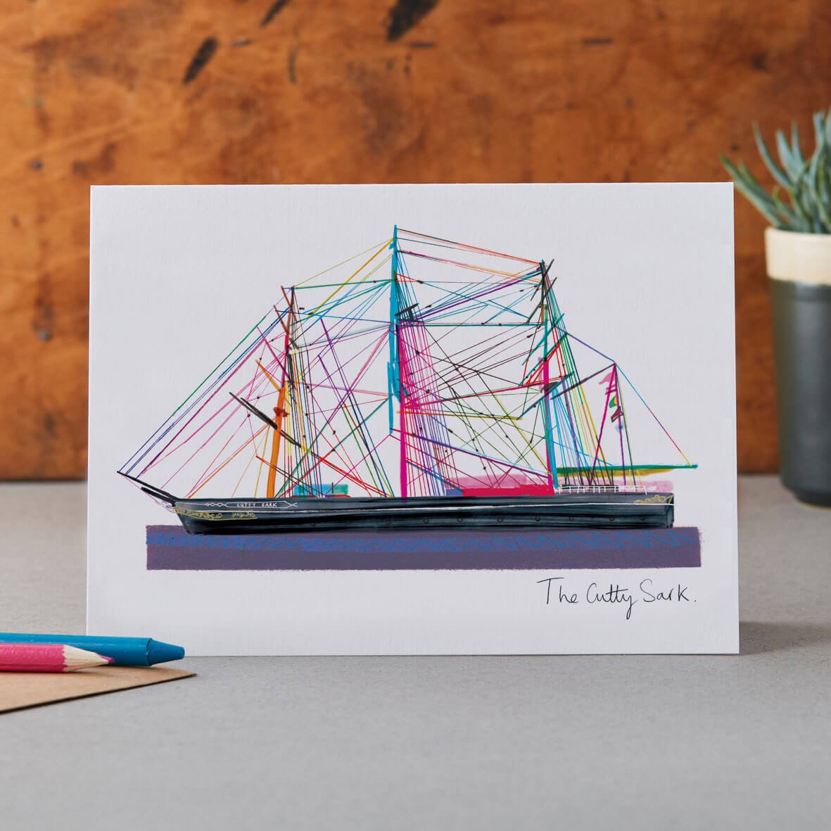 Uniquely designed by Ilona Drew this stunning card featuring the Cutty Sark has been printed in the UK on quality 350gsm board.