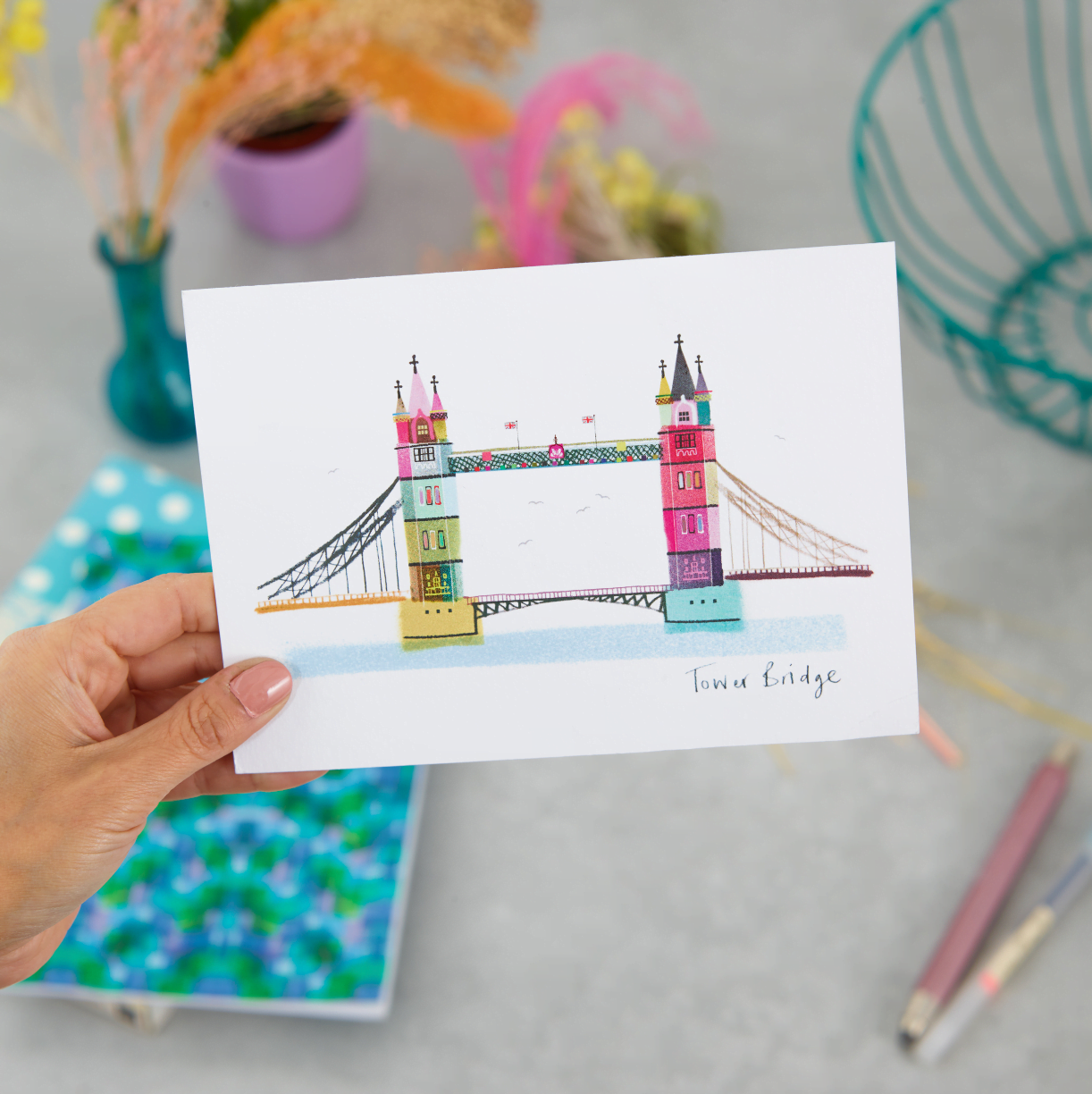Uniquely designed by Ilona Drew this stunning card featuring Tower Bridge, London has been printed in the UK on quality 350gsm board and measuring 178mm x 130mm.