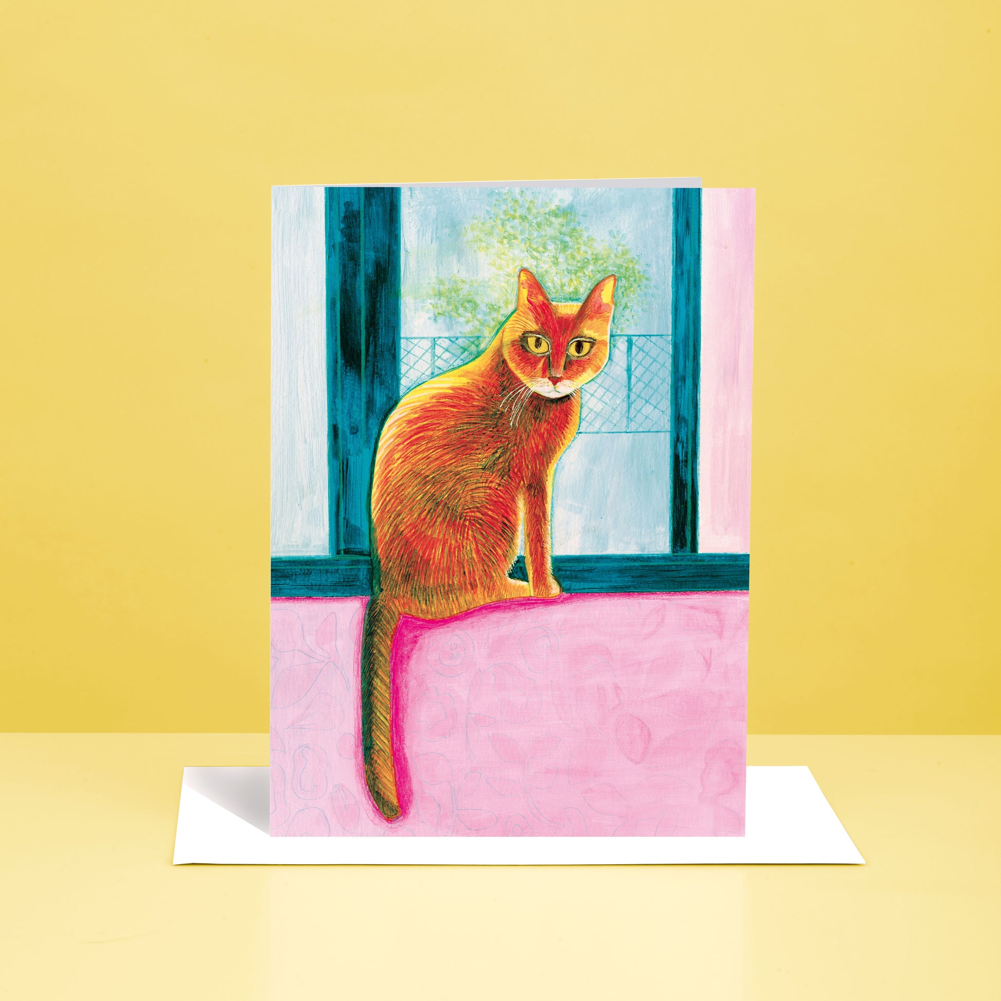 Grab this fun and vibrant Window Sill Cat greetings card.
