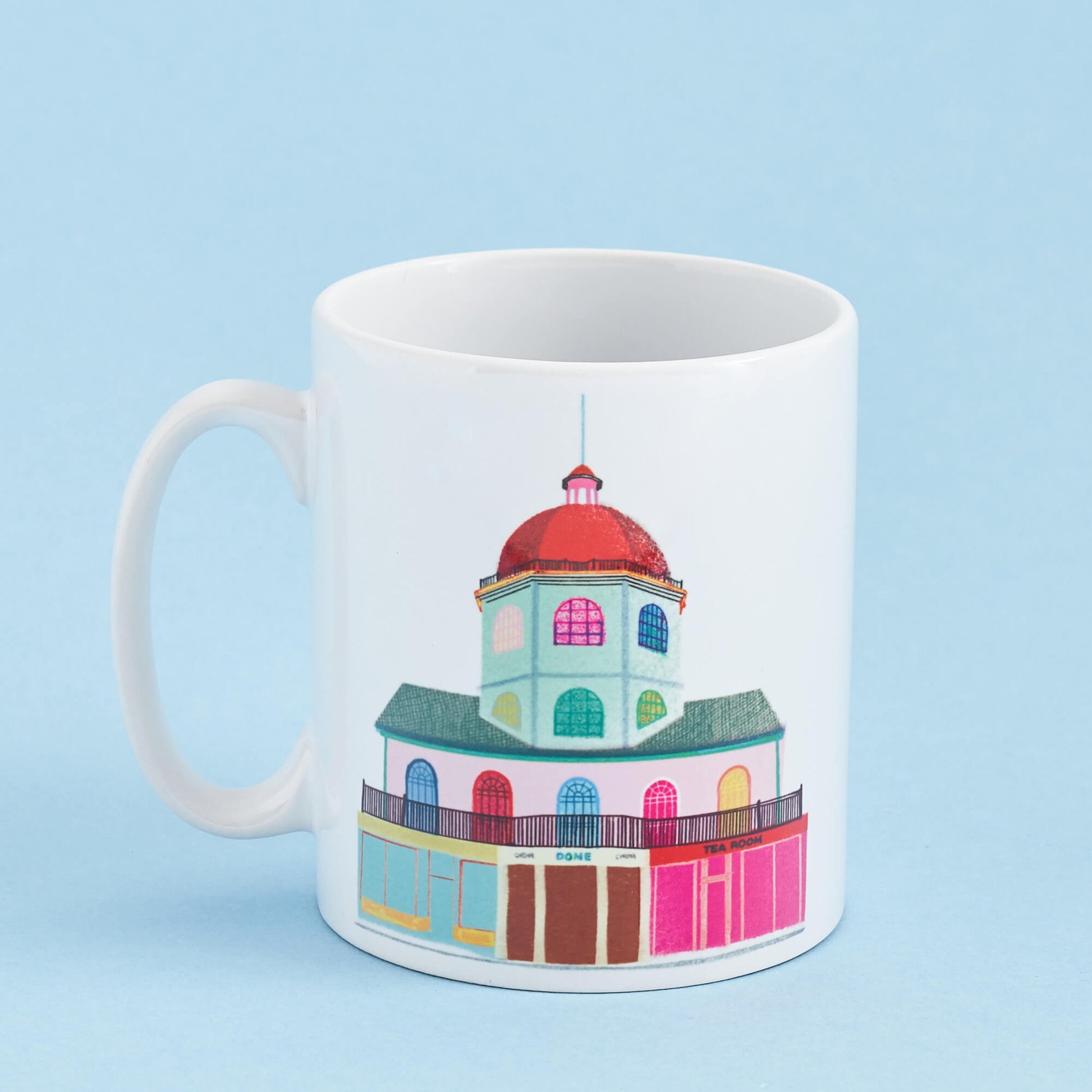 The Worthing Dome Landmarks mug is bursting with colour designed by Ilona Drew.