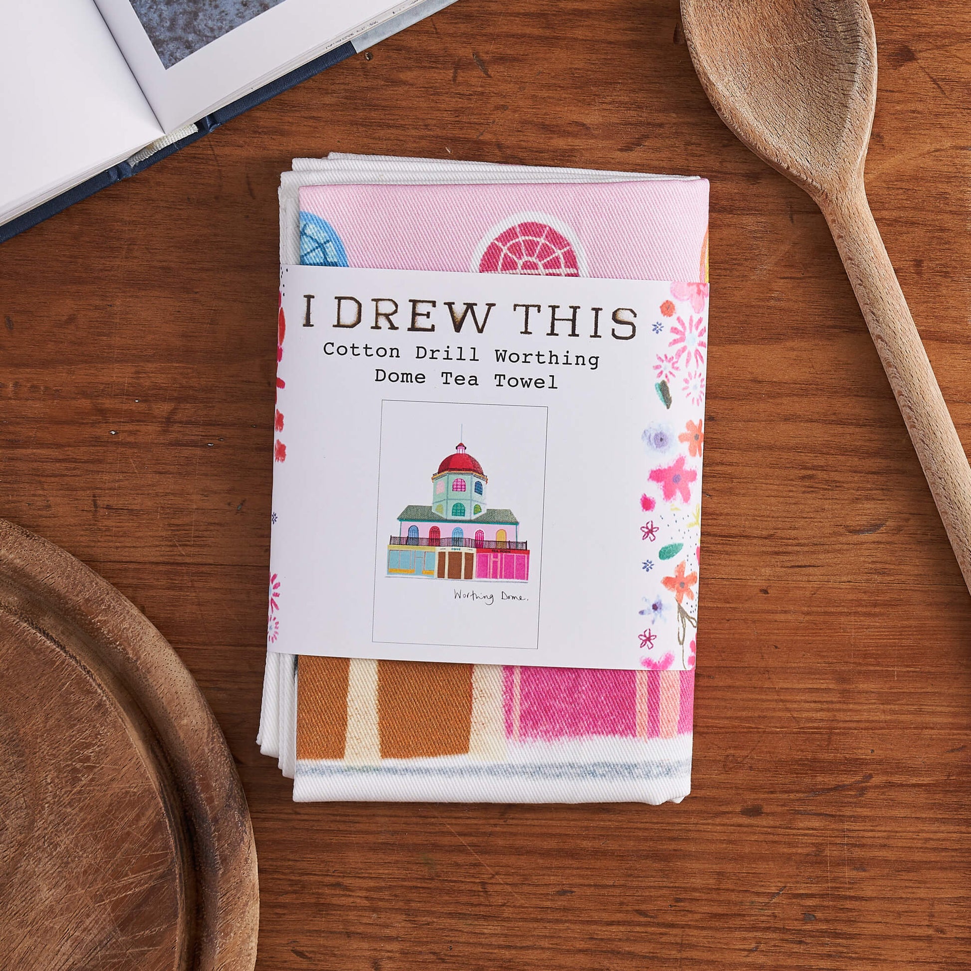 This tea towel captures one of Sussex's most famous landmarks beautifully in Ilona's illustration of Worthing Dome.